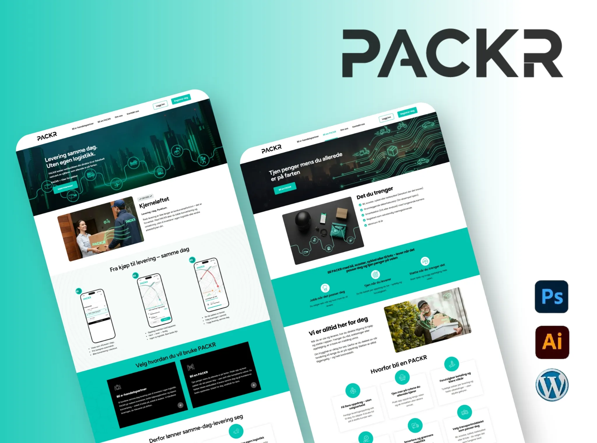 - For å styrke Packrs markedsposisjon videreutviklet vi det visuelle uttrykket for å speile en moderne og teknologidrevet logistikkplattform. Målet var å skape en ren og profesjonell merkevareidentitet som kommuniserer effektivitet, pålitelighet og innovasjon.